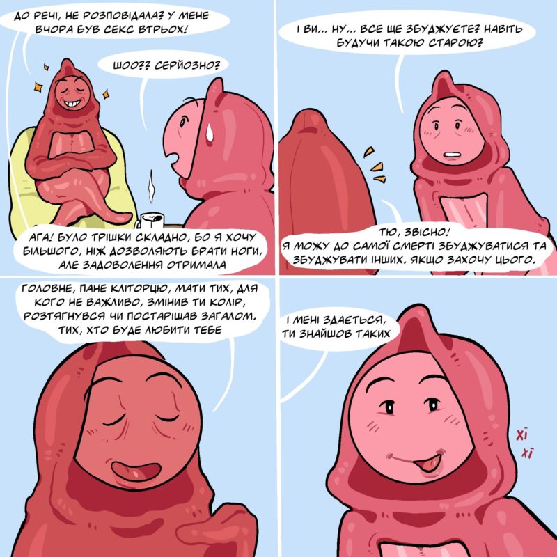Знайомтеся, це Пан Кліторець, також відомий як ПК. Він головний герой онлайн-мальопису, що оселився на просторах мережі Х (більш відомої як Twitter). Із березня 2024 він щотижня розповідає про свої пригоди, пошуки задоволення, міфи та стереотипи, стосунки та безпечний секс.