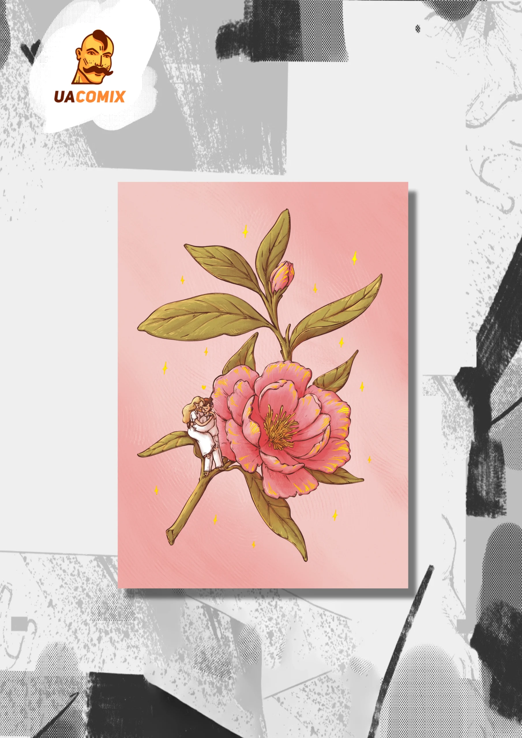 Листівка “Обіймимось в квітах” – одна із трьох листівок із серії “Люблю”.